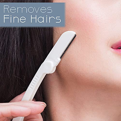✔ BYE-BYE PEACH FUZZ - Rimuove rapidamente i peli del viso in pochi minuti. La piccola lama pieghevole rende facile trasportare il rasoio in qualsiasi borsa o borsa per il trucco in modo che sia lì da usare ogni volta che è necessario un ritocco.