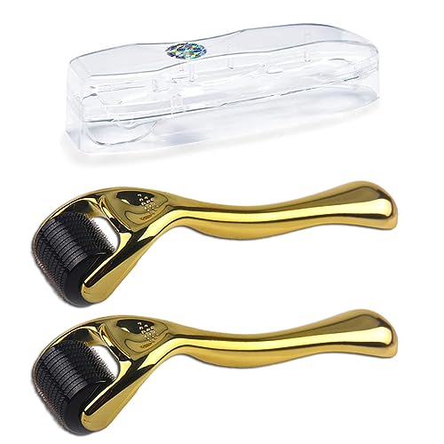 Dermaroller 2Pack (0.5mm+1.0mm) Rullo Barba Dermaroller per Microneedling Rullo Barba Crescita per Cicatrici, Rughe, Perdita Capelli Dermaroller Capelli con 540 Microneedles in Acciaio Inox al Titanio