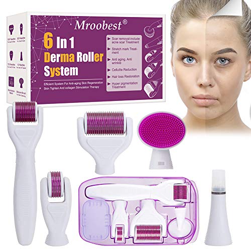 RIDUCE LE RUGHE E LE CICATRICI: Derma Roller 6 in 1 può migliorare le linee sottili, le cicatrici leggere, le cicatrici da acne leggere e il tono della pelle non uniforme, ridurre rughe, smagliature e perdita di capelli.