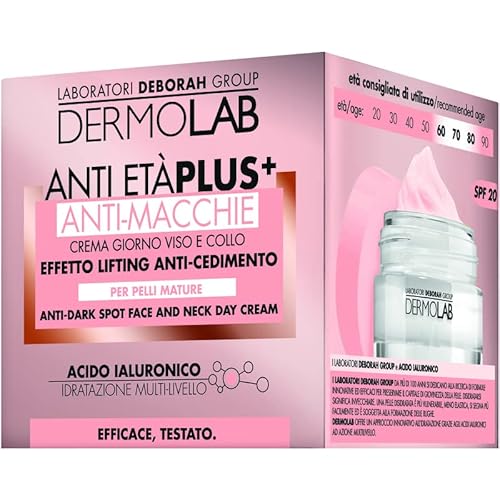 DERMOLAB Anti Età Plus Antimacchie Crema Giorno Viso e Collo, Effetto Lifting Anti-Cedimento per Pelli Mature con Acido Ialuronico, 50 ml, 1 item