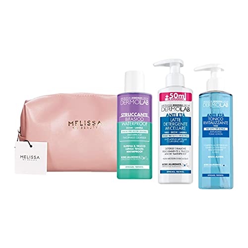 DERMOLAB Kit Anti Età: Struccante bifasico - Latte detergente - Tonico + Pochette
