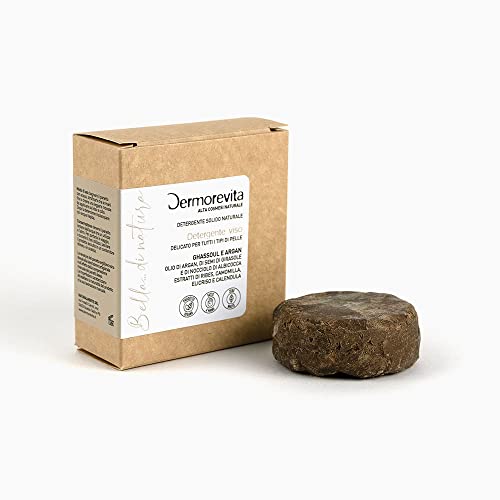 Dermorevita Detergente Viso Solido, con Argilla Ghassoul, Oli Di Argan, Semi Di Girasole e Di Nocciolo Di Albicocca, Estratti Di Ribes, Camomilla, Elicriso E Calendula