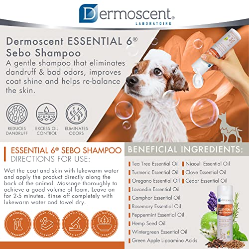 Dermoscent Essential 6® Sebo Shampoo per Cani e Gatti - Antiforfora Pelle grassa Cattivo Odore - Pelo Lucido - 200 ml / 6.76 FL. oncia.