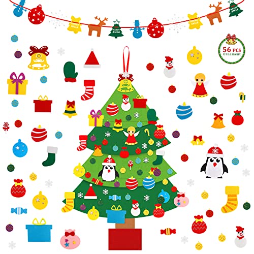 Derogras Albero Natale Feltro per Bambini, 100 CM Albero Natale Feltro Con 56 Staccabili Ornamenti E Striscione Natalizio In Feltro Per per decorazioni natalizie