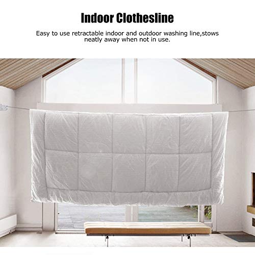 Liberamente retrattile: cavi per vestiti estraibili compatti, possono essere bloccati alla lunghezza desiderata o estesi fino a 4,2 m/13,8 piedi e possono contenere un peso massimo di 20 kg/44 libbre, comodo da ritrarre quando non in uso