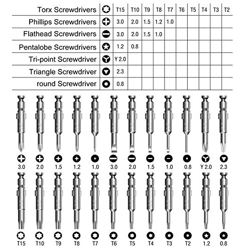 Dersoning insieme di ferramenta di 25 pezzi di precisione per Retroilluminazione per telecomando per computer portatile (con sacchetto Nero)