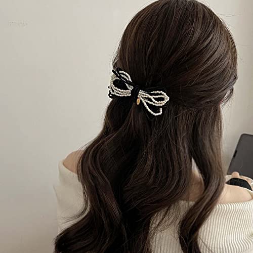 Dervivea Francese Bowknot Hairclip Barrette Velluto Fiocco Capelli Barrette Vintage Nero Bowknot Capelli Clip Perla Fiocco Copricapo Clip Decorativi Accessori Per Capelli Per Donne E Ragazze