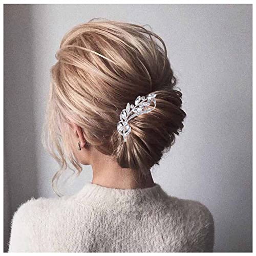 Dervivea Scintillante Strass Foglia Capelli Pettine Foglia D'argento Lato Pettine Pin Nozze Nuziale Foglie Pettine Capelli Copricapo Foglia Di Cristallo Copricapo Decorativo Accessori Per