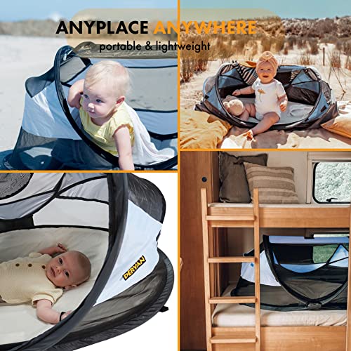 Deryan BL-BLUE Lettino da viaggio Baby Luxe - Blu - Sistema pop-up - Set-up in soli 2 secondi - Copertura in cotone con cerniera, materasso ad aria autogonfiante e borsa per il trasporto, Blu