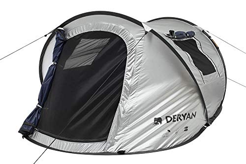 DERYAN Luxe Dome - Tenda da viaggio - Pop-Up - Installazione in 2 secondi - Anti UV - Adatto per 2 persone - Argento/Nero