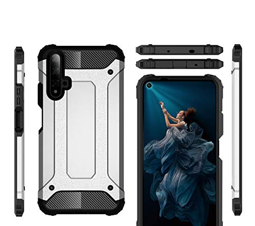 DESCHE Compatibile per Cover Huawei Nova 5T / Honor 20 Outdoor Custodia Resistente + Vetro Temprato, Hard PC + Soft TPU 2-in-1 Doppia Protezione Case Cover Antiurto AntiGraffio Durevole -Argento