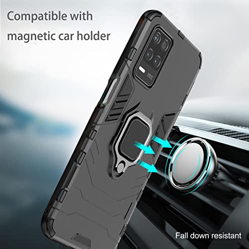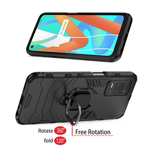 GKK DESCHE Cover Compatibile per Realme 8 (5G) / Realme Narzo 30 con Vetro Temperato, Custodia Protettiva Resistente con Supporto Magnetico Rotante a 360° - Nero