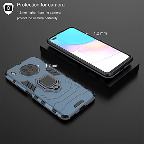 DESCHE cover per Honor 50 Lite/Huawei Nova 8i con Staffa Anello + Vetro temperato, Custodia Protettiva Resistente Antiurto Robusta Case con Supporto Magnetico Rotante a 360° - Marino