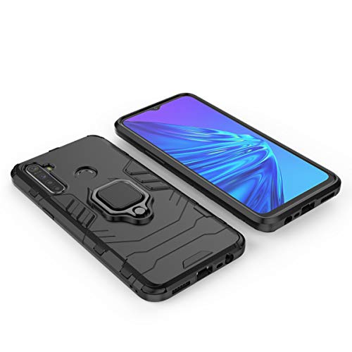 DESCHE per Cover Realme 5 / Realme 5i / Realme 6i / Realme C3 Case Cover per Staffa dell'anello + Vetro Temperato, Compatibile con Supporto Magnetico per Auto - Nero