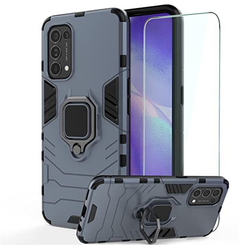 DESCHE cover per OPPO Find X3 Lite con Vetro Temperato, Custodia Protettiva Resistente Antiurto Robusta Case con Supporto Magnetico Rotante a 360° - Marino