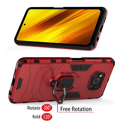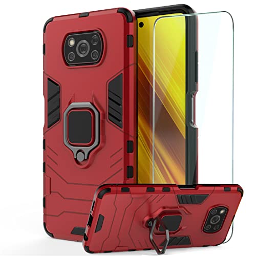 GKK DESCHE per Cover Xiaomi Poco X3 NFC/Poco X3 PRO, Custodia Antiurto Resistente Durevole Poco X3 con Staffa ad Anello + Proteggi Schermo, Compatibile con Supporto Magnetico per Auto - Rosso