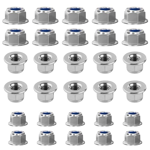 DesertBoy 30 Pezzi Dadi a Flangia Dadi Esagonali con Flangia Autobloccante DIN 6926 A2 Dadi di Sicurezza Dado Esagonale Flangia Dadi Bloccaggio in Acciaio Inox Dadi flangiati M5 M6 M8