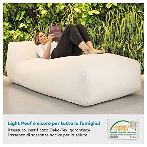 ✅ TESSUTO IDROREPELLENTE: La poltrona Light Pouf è sfoderabile e realizzata in tessuto idrorepellente e super-resistente, adatta sia per ambienti esterni che interni. È lavabile in lavatrice e si può stirare a bassa temperatura. Sicuro per tutta la famiglia: la certificazione Oeko-tex garantisce l'assenza di sostanze nocive per la salute