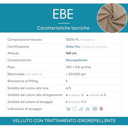 ✅ DESIGN: Ebe è un tessuto al metro in morbido velluto da poliestere, con trattamento idrorepellente e quindi resistente a macchie ed umidità. E' estremamente resistente e progettato per durare a lungo nel tempo (martindale > 50.000 giri);