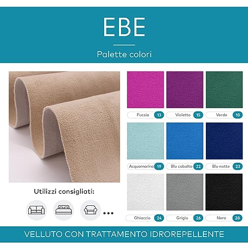 ✅ APPLICAZIONI: Ebe è la stoffa al metro in velluto ideale per l'arredamento e il fai-da-te: può essere impiegata per rivestire mobili imbottiti come divani moderni o classici, testate dei letti, poltrone, sedie, pouf, cuscini e complementi d'arredo in genere o per realizzare progetti artigianali come borse, astucci, pochette, etc.