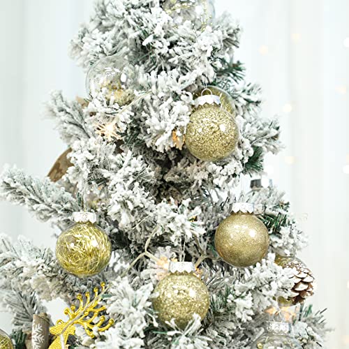 SUEH DESIGN 30PCS Palle di Natale Trasparente 6CM Set Palla di Natale Porta Applique Ornamenti Decorazioni Albero Palle Decorative Festa, Oro