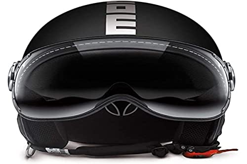 Calotta in 2 taglie in ABS. Vite attacco visiera in metallo spazzolato, visiera esterna antigraffio UV400 con supporto in fibra di carbonio, visierino solare scuro ad azionamento manuale, guancette estraibili e lavabili e sottogola con fibbia micrometrica. I caschi in vendita sono dotati di omologazione europea ECE 2205.