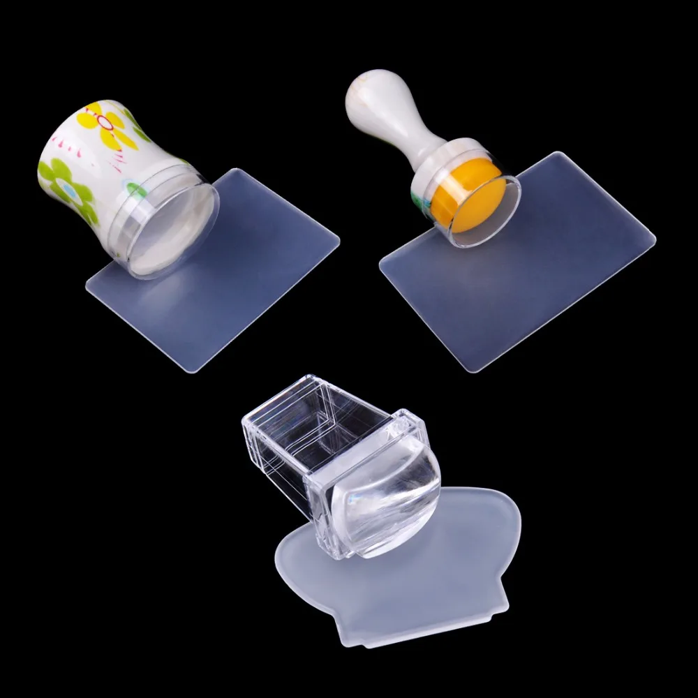 New Design Pure Clear Jelly Silicone Nail Art Stamper Scraper with Cap Transparent 3 sizes Nail Stamp Stamping Tool