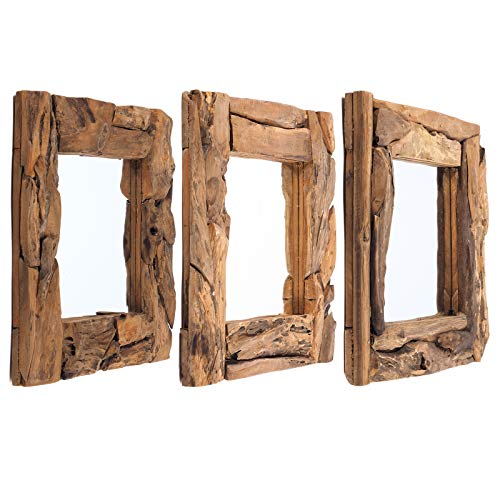 DESIGN DELIGHTS Specchio da parete in legno rustico teak 50" | legno di teak (anodizzato), naturale, 50 x 50 x 3 cm (altezza x larghezza x profondità)