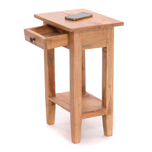 Design Delights - Tavolo per telefono rustico, vintage, modello Planta, 52 x 34 cm (A x L), legno massiccio di mogano, per fiori, tavolino corridoio, comodino con cassetto, colore 08, miele cerato