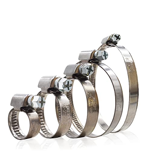 Forte tenuta, fascette stringitubo in acciaio inox di alta qualità per quasi tutti i campi di applicazione, per carichi elevati e forze di trazione, tenuta stabile e affidabile. Set di 10 fascette stringitubo.