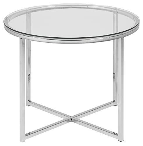 AC Design Furniture Gurli Tavolino Rotondo, Ø: 55 x 45 cm, Transparante/Cromo, Vetro/Metallo, 1 pz