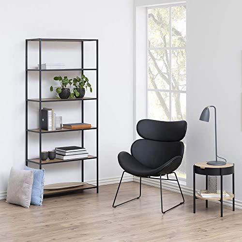 AC Design Furniture Jörn Libreria con 5 Ripiani, Mobile da Soggiorno, Aspetto Rovere e Metallo Nero, A: 185 x L: 77 x P: 35 cm, 1 pezzo