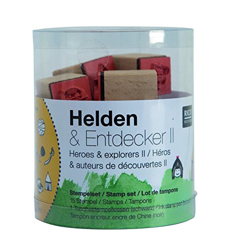 RICO DESIGN Helden und Entdecker - Set di timbri in legno naturale