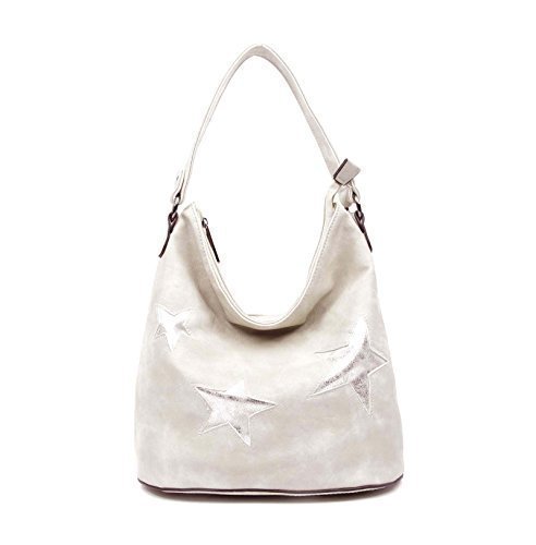Design italiano Donna Stella Borsa Shopper Borsa Con Maniglie Borsetta Borsa A Tracolla - beige, ca.: 35x27x20 cm (BxHxT)