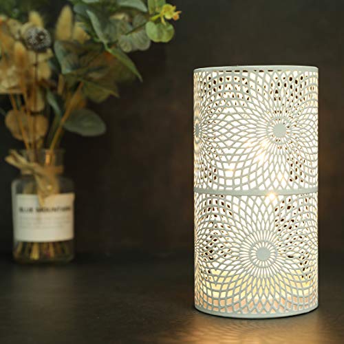 [SET DI 2 LAMPADE IN METALLO MOTORIZZATE ]- La lampada decorativa vintage a grandezza naturale alimentata a batteria, con lampadina in plastica, lucine bianche calde e montatura rotonda in metallo a fantasia di colore bianco, crea un'aura di fascino antico - Aggiunge un tocco meraviglioso a qualsiasi spazio con il grazioso connubio tra bellezza e praticità - Puntello accattivante per tavoli, bar, patio, portici;