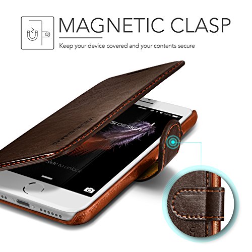 VRS Design [Layered Dandy] - Custodia a Portafoglio in PU Pelle per iPhone 7, con 3 Fessure per Carte di Credito, Marrone