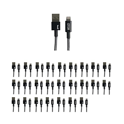 Design Letters Cavo iPhone | Cavo di Ricarica Lightning USB 2.0 | Caricabatterie iPhone Certificate CE, RoHS | Rapida Nylon Cavo Lightning per iPhone | Cavo Personale | 1 Meter Cavo USB Nero