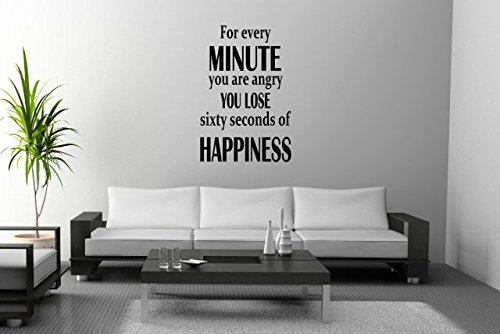 JC Design' per ogni minuto Sie sind Angry perdere Sie 60 secondi of Happiness. Adesivo da parete, nero, Small: 40cm x 60cm / 16" x 24"