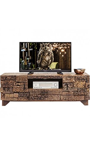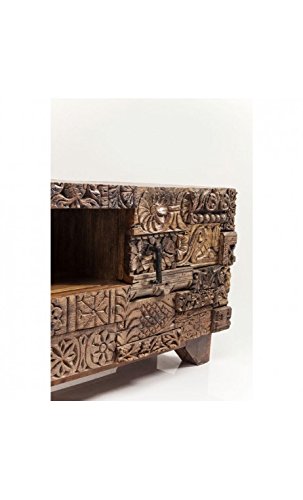Mobile TV 2 ante patchwork di legno sorpresa natura Kare designmeuble di televisione dotati di 2 ante, d '1 cassetto scorrevole e d' 1 nicchia. Si compone di legno cerato e poggia su 4 piedi.Un' atmosfera incredibile che vi farà viaggiare in India dove il legno intagliato è un art e arreda la maggior parte delle facciate di casa. Tutto questo Art è concentrato in questo mobile TV fatto a mano proponendo e dei pezzi unici.Sua