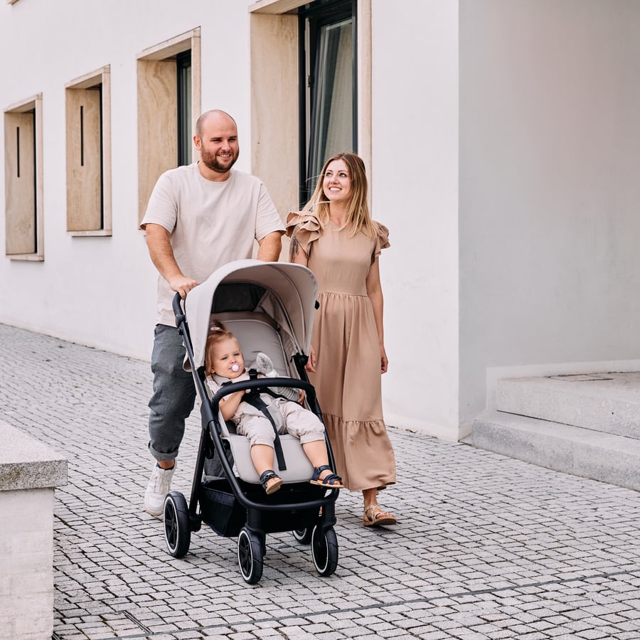 Dettagli del prodotto: Robusto passeggino per bambini con pneumatici Passeggino leggero ed estremamente maneggevole per tutti i giorni con pneumatici per la città e la campagna Ripiegamento facile con una sola mano e pratica funzione stand-alone Utilizzabile fin dalla nascita grazie al sistema di trasporto opzionale con seggiolino auto per neonati Sedile imbottito con poggiapiedi regolabile in altezza e posizione reclinabile in piano Le grandi ruote anteriori e posteriori piene d'aria assicurano una guida fluida indipendentemente dalle condizioni del terreno o dal fondo Freno di stazionamento direttamente sulla ruota posteriore destra Dimensioni e peso: Dimensioni assemblate (lunghezza x larghezza): 80 x 54 cm Dimensioni ripiegato (lunghezza x larghezza x altezza): 69 x 55,5 x 28,5 cm Altezza della maniglia di spinta: 76,5 - 108,5 cm Superficie di seduta (lunghezza x larghezza): 23 x 35 cm Schienale (larghezza x altezza): 35 x 49,5 cm Dimensioni ruote anteriori/posteriori: 18,5 cm/26,5 cm Peso del prodotto: 9,3 kg Capacità di carico totale: 27 kg Capacità di carico del cestino: 5 kg Capacità di carico sedile: 22 kg Compatibilità: ABC Design tTulipano Cybex Aton, Aton M, Aton M i-size, Aton 5, Aton Q, Aton Q Plus, Aton Q i-size, Cloud Q, Cloud Q Plus, Cloud Z i-size, Cloud Z2 i-size Joie i-Gemm Maxi Cosi Citi, Cabrio Fix, Coral, Pebble, Pebble Plus, Pebble Pro, Pebble 360 BeSafe tiZi Go Modular X1 i-Size Avionaut Cosmo, Pixel Pro Incluso nella fornitura: Telaio Ruote Attacco per passeggino Tettuccio barra paracolpi