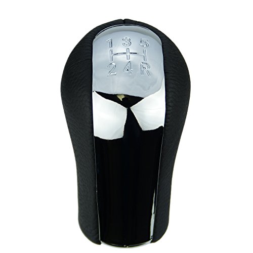 L&P Car Design Pomello del cambio in vera pelle A279-2, a 5 marce, cromato, con filettatura fine M12, pezzo di ricambio Plug and Play