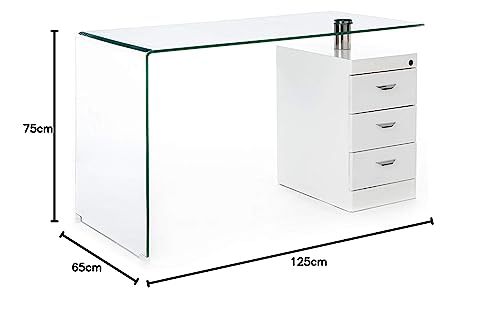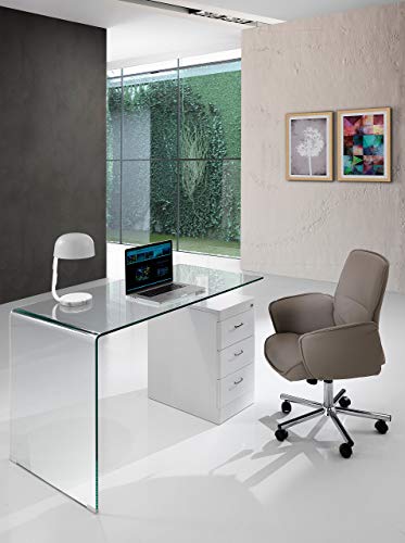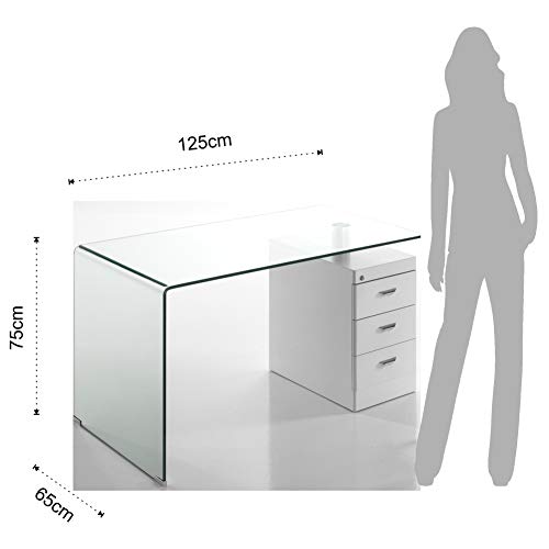 Wink Design Bow Scrivania in Vetro Curvato, Wood/Glass, Trasparente/Bianco, Taglia Unica