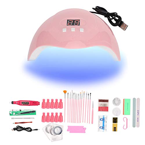 Nail Art Design Set, Nail Art Design Kit Starter Kit Per Smalto Gel Con Lampada Per Unghie Uv LED Da 54 W 15pz Nail Art Pennelli Strass Lucidatura Set Di Lime Per Unghie Kit Per Manicure