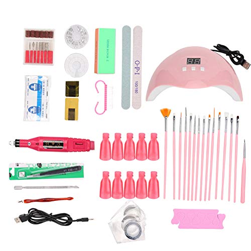 【Set per unghie】 Il set per unghie professionale è dotato di lampade UV per unghie, spazzole per unghie, lucidatrici, trapani per unghie, lime per unghie, clip per immersione e altri strumenti. Ha una varietà completa, un funzionamento semplice e un trasporto conveniente, adatto per la casa oi saloni.