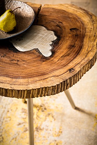 Kare design - Tavolino Tronco di Albero e Acciaio Colore Oro Natalina, 46 x 54 x 62 cm
