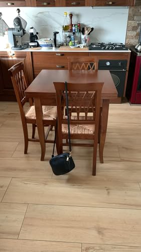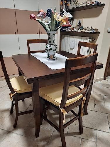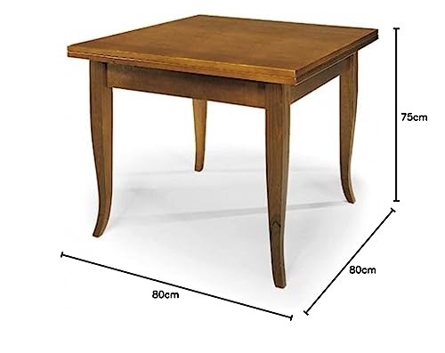 Mar.c.a. Design - Tavolo Allungabile fino a 160 cm | Gambe a Sciabola, Legno di Pioppo Noce Scuro, Apertura a Libro - Tavolo Arte Povera Made in Italy, Mis. 80x80 chiuso e 160x80 aperto