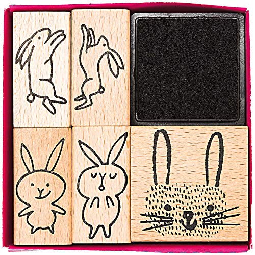 Rico Design 5 timbri in Legno con inchiostratore - Coniglio