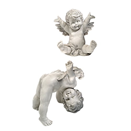 Design Toscano SH93042209 Statua Cherubino Che Ruzzola: Set Topsy e Turvey, Pietra Antica, 23x25.5x29 cm