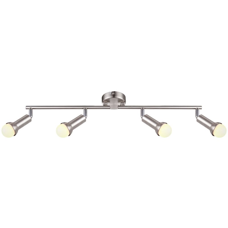 Descrizione Con questa plafoniera stabilisci nuovi standard in il tuo appartamento Realizzata in nichel e cromo, questa plafoniera convince per il suo design unico e la sua efficacia come illuminazione del soggiorno. Grazie al design moderno, è persino possibile portare questa lampada in quasi ogni stanza immaginabile per illuminarla con la massima soddisfazione. a confronto ai normali faretti a led consumano solo una minima quantità di energia elettrica e sono ancora più bassi nei consumi rispetto alle lampade a risparmio energetico. Questo salva l'ambiente e il tuo portafoglio. Sono incluse quattro lampade LED di alta qualità da 4 watt! Dettagli lampada • Tipo di lampada: Lampada da soffitto • Materiale: nichel opaco, cromo ? • Dimensioni LxPxA in mm: 600x85x190 ? • Attacco: 4x E14 LED ? • Sorgente luminosa inclusa: Sì ? • Sorgente luminosa LED: 4x 4 watt ? • Flusso luminoso totale: 4x 400 lumen ? • Alimentazione: 230V Dettagli lampade a LED ? • numero: 10641 ? • tipo di lampada