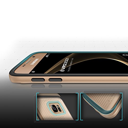 UNA COVER UNA SICUREZZA: le due parti della cover doppia, guscio rigido in Oro lucente Bumper morbido antishock proteggono efficacemente retro e bordi del Samsung Galaxy S7